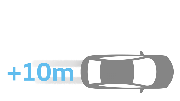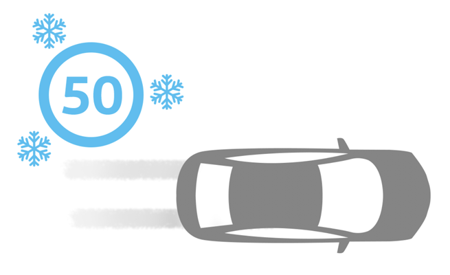 Avec des pneus hiver, la distance de freinage est jusqu’à 20 % plus courte ! À 50 km/h sur chaussée mouillée, cela représente un écart de plus de dix mètres.
